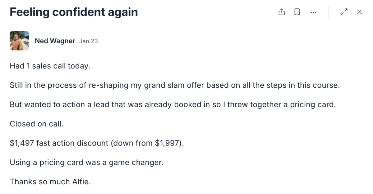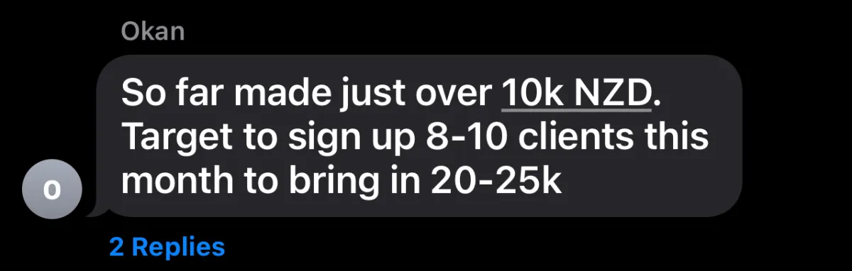 En dos semanas, sus ingresos mensuales se duplicaron, pasando de 3 000 a 4 000 $ a 10 000 $ en la mitad del tiempo, y en 120 días, alcanzó los 50 000 $ mensuales al aprovechar su creciente audiencia para generar ventas de alto valor.