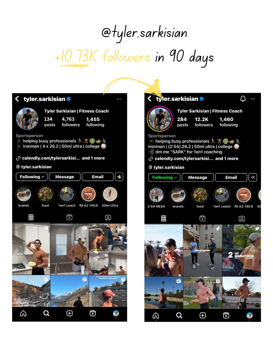 Tras aplicar los sistemas de Amplify, Tyler casi triplicó su número de seguidores en 90 días y generó más de 30 000 $ en ingresos por clientela.
