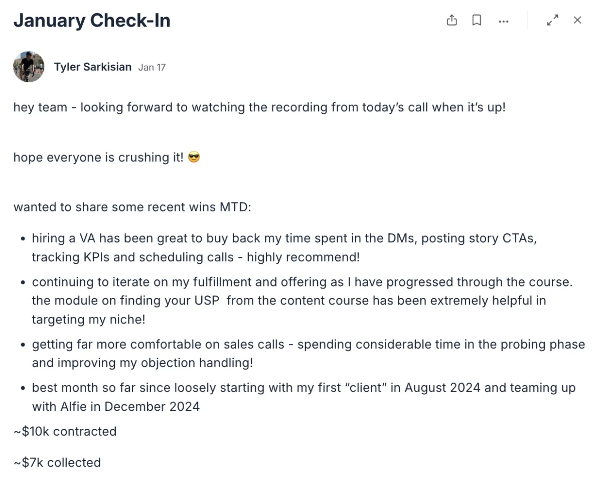 Con su primer mes de 20 000 $ a la vista, el crecimiento de Tyler ahora se basa en la claridad, la estrategia y la constancia.