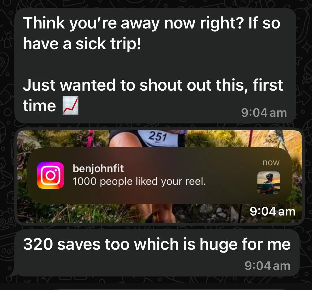 "De 1.500 seguidores en dos días y casi más de un millón de visualizaciones… ahora mismo ya te digo, tengo el Instagram petadísimo de gente que quiere empezar con el coaching."