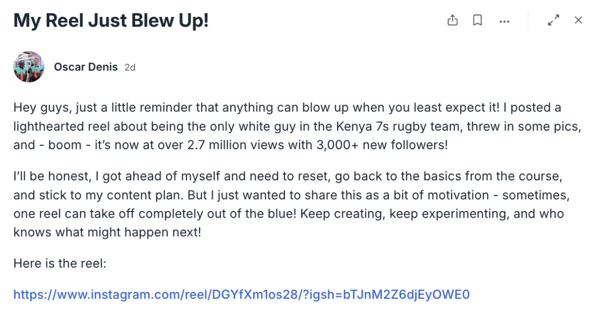 Con menos de una hora al día para crear contenido, pasar de cero a uno parecía imposible, hasta que aplicó las herramientas virales de Amplify.