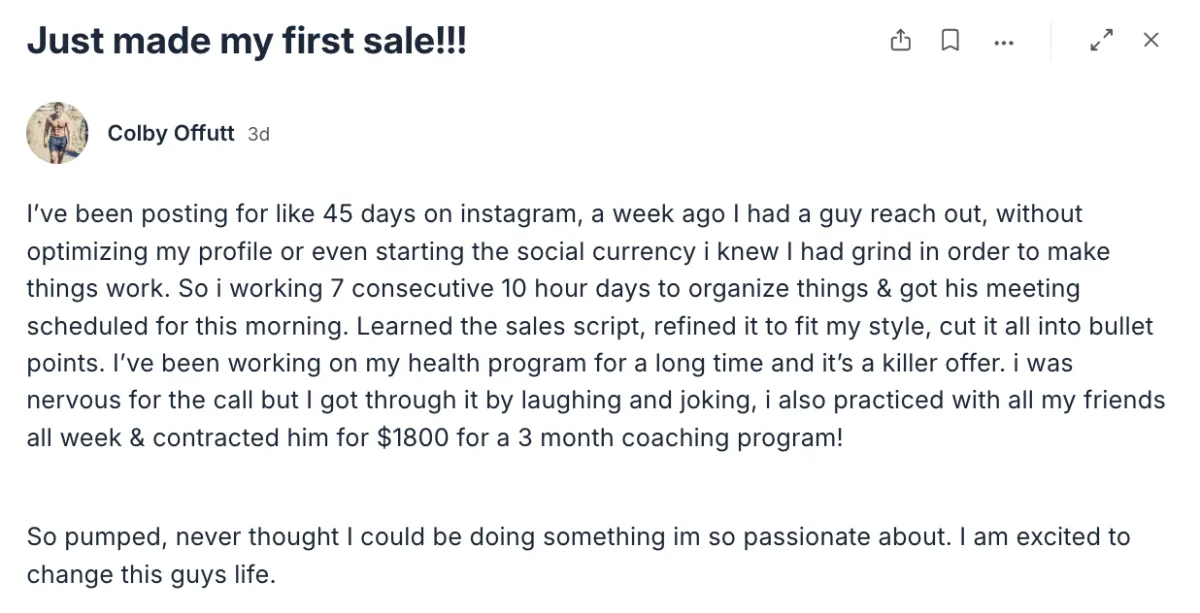 A pesar de publicar contenido de fitness durante meses, Tyler tuvo dificultades para atraer clientes de alto valor.